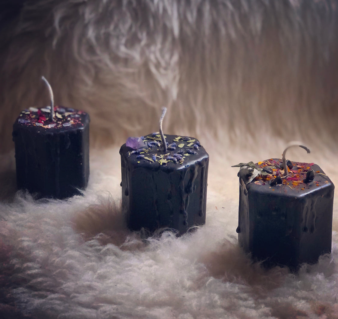 These beauties are intended as Altar candles to be used for deeper work of release, purification, protection, dreamwork, to clear negative energies and stagnation; ultimately allowing energetic space for new growth. 🌱🌿🖤