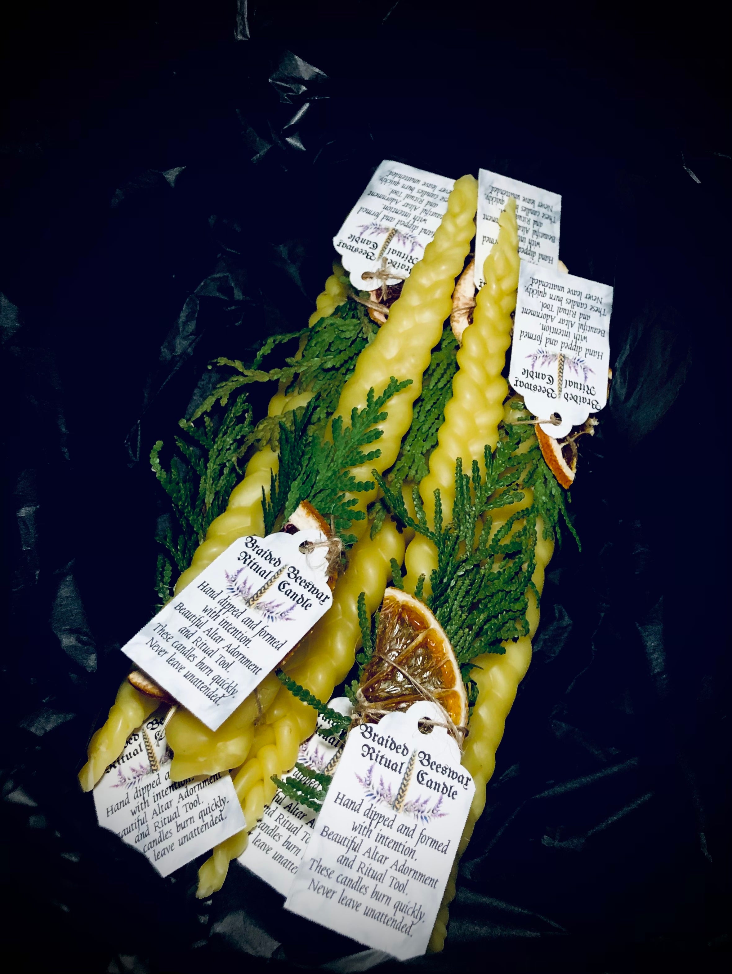 Hand-dipped with cotton wicks and braided by my own hands.Β
