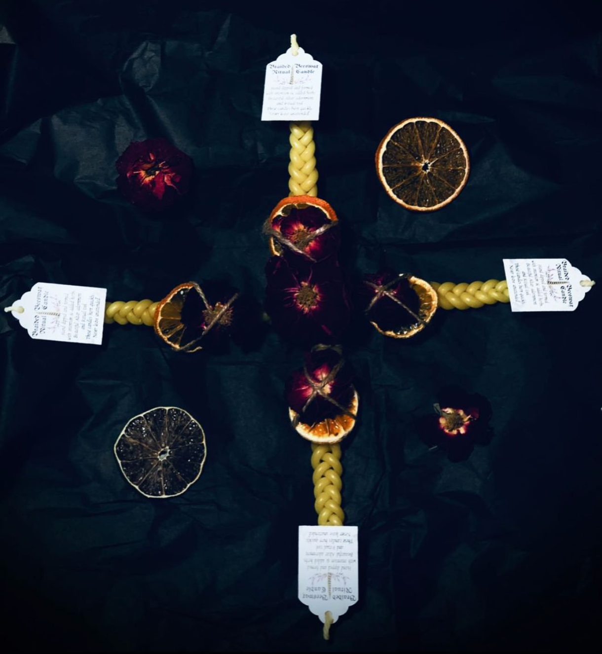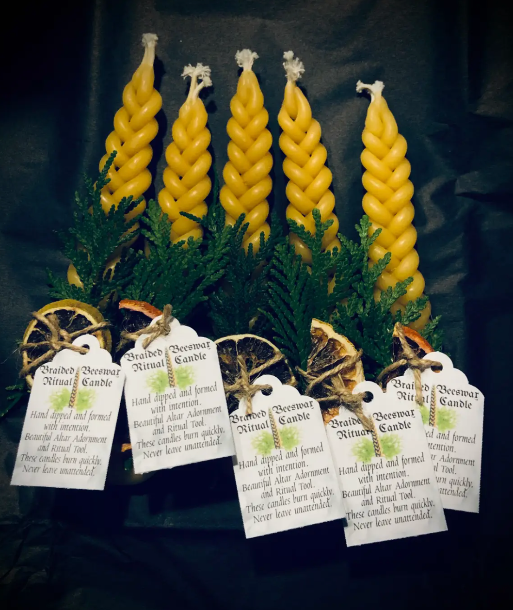 Hand-dipped with cotton wicks and braided by my own hands.