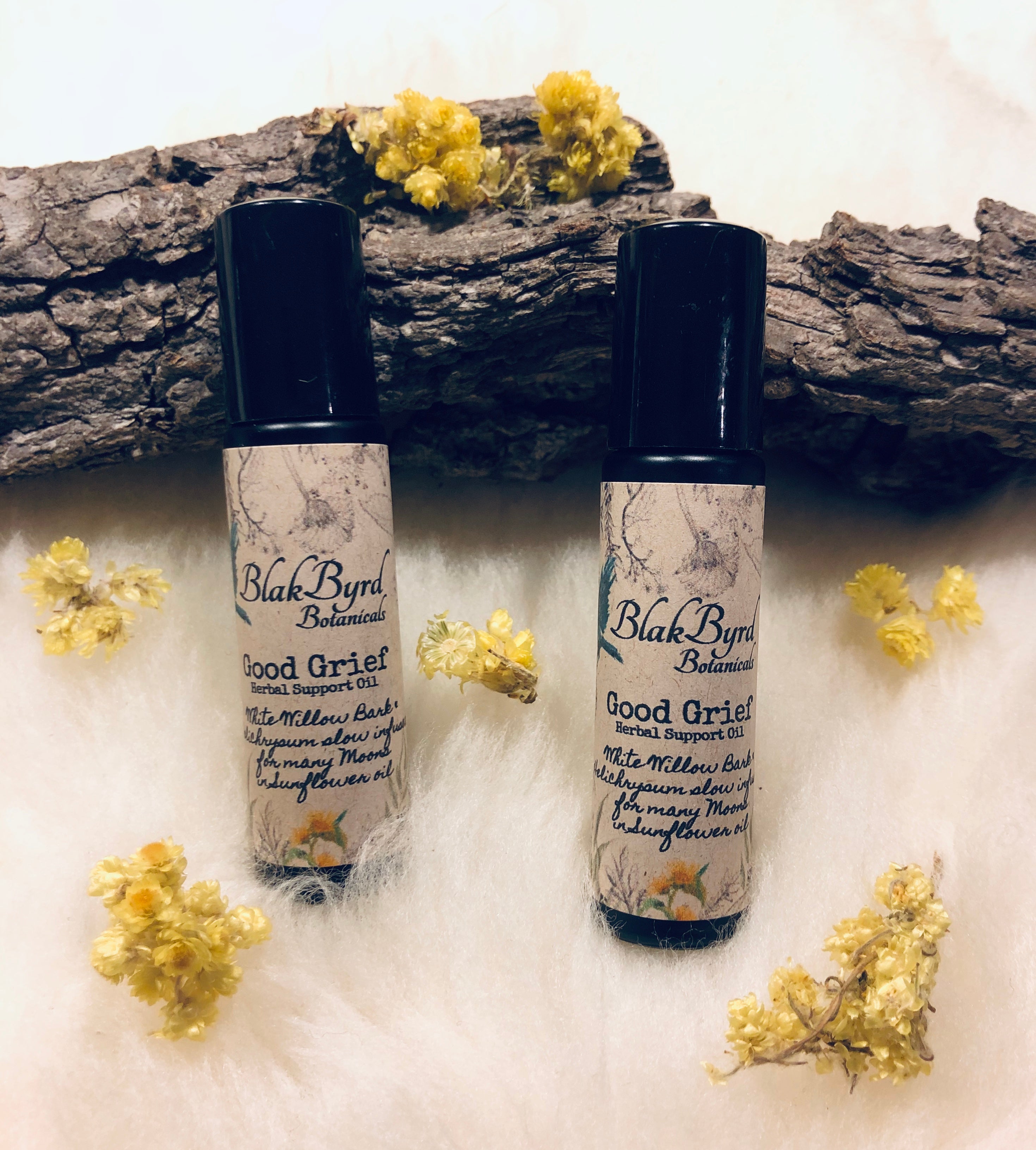 Wise White Willow to support with moving through grief/loss of any kind and Helichrysum to accompany us on our journey to reclaim joy on the other side.