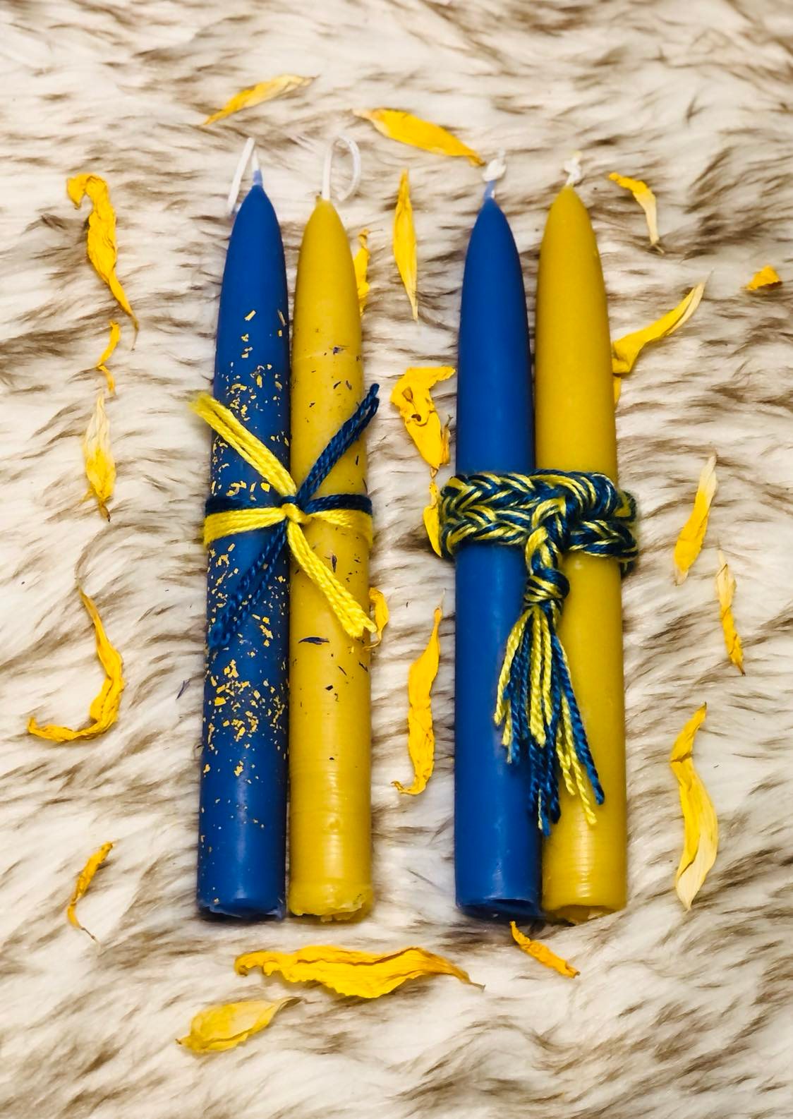 Created in the colours of the Ukraine flag. The colors represent the wide blue skies and the yellow represents the wheat fields that characterize the country. From a psychological point of view, blue symbolizes calm, whilst yellow symbolizes joy.