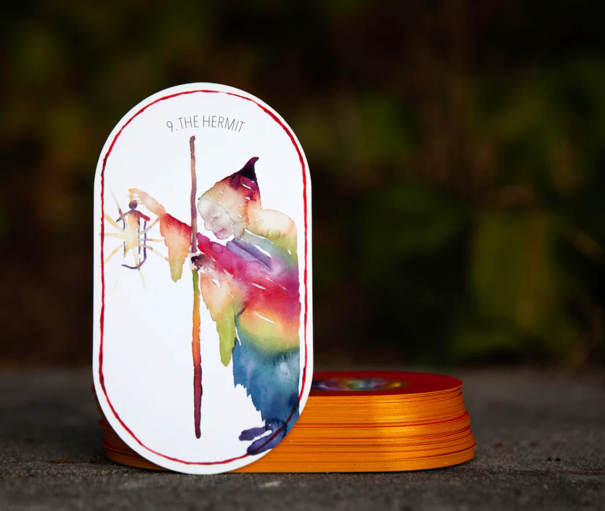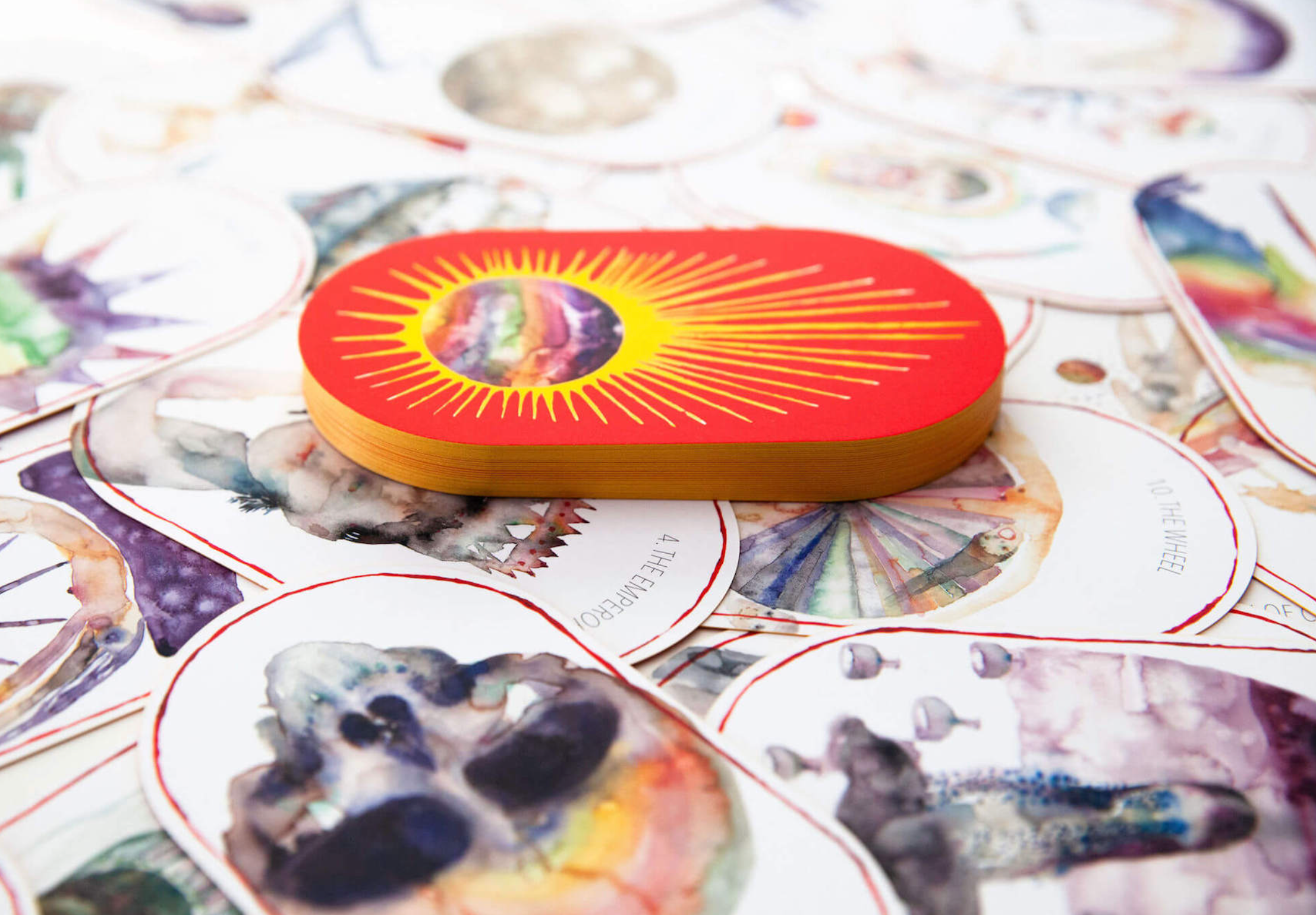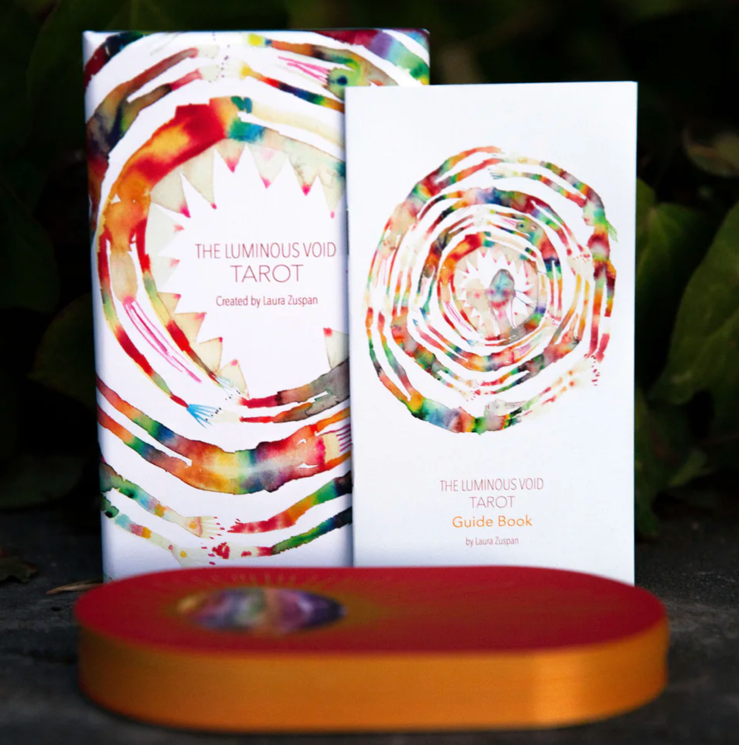 Luminous Void Tarot was created as a ceremonial art object, a sculptural jewel ideal for ancestor reverence and communication, meditation and divination. It captures the subconscious shamanic realms of consciousness. It loosely follows the structure and symbolism of the Rider-Waite Smith Deck. It was created by Laura Zuspan an artist, healer, meditator and teacher. All art is original watercolor.