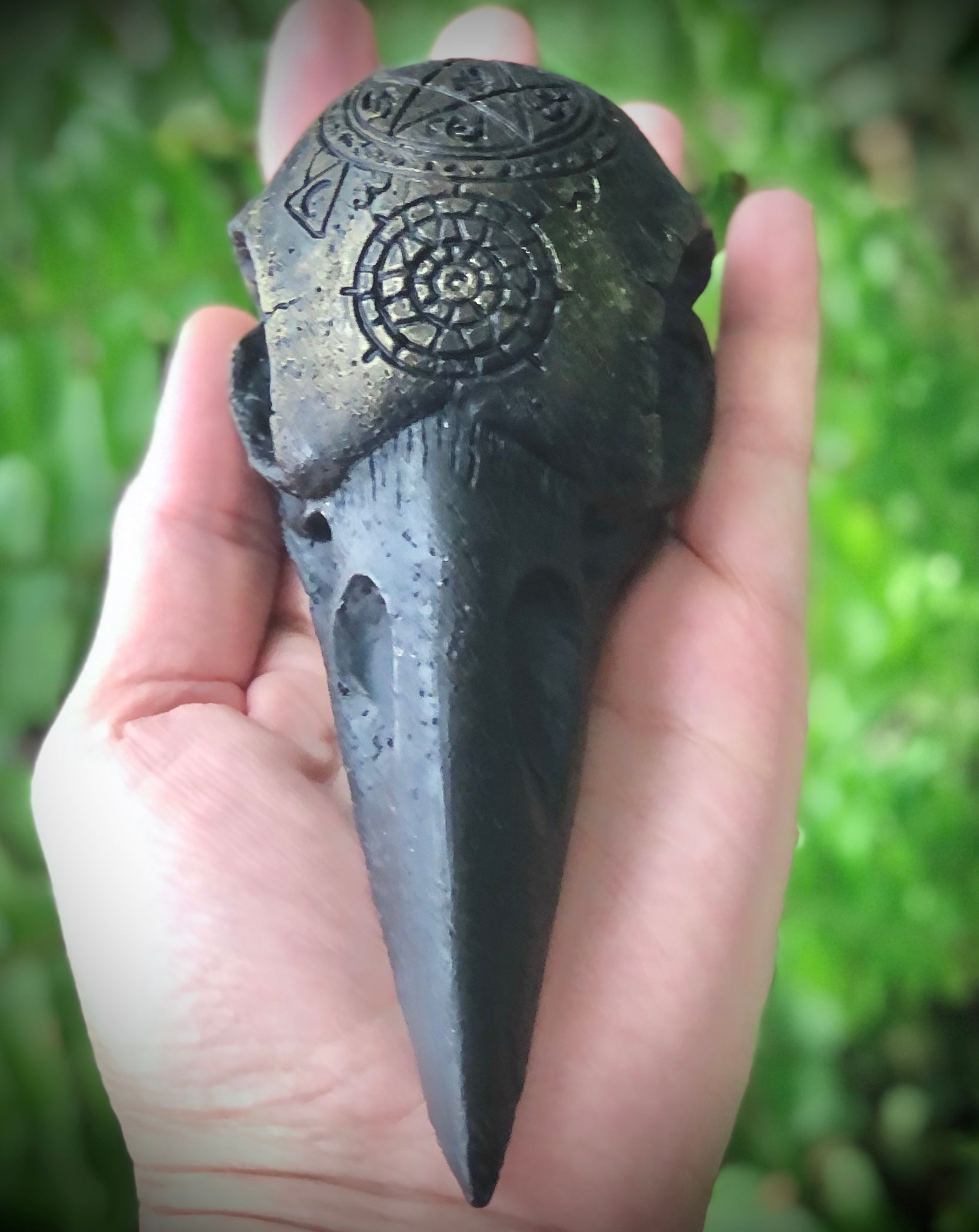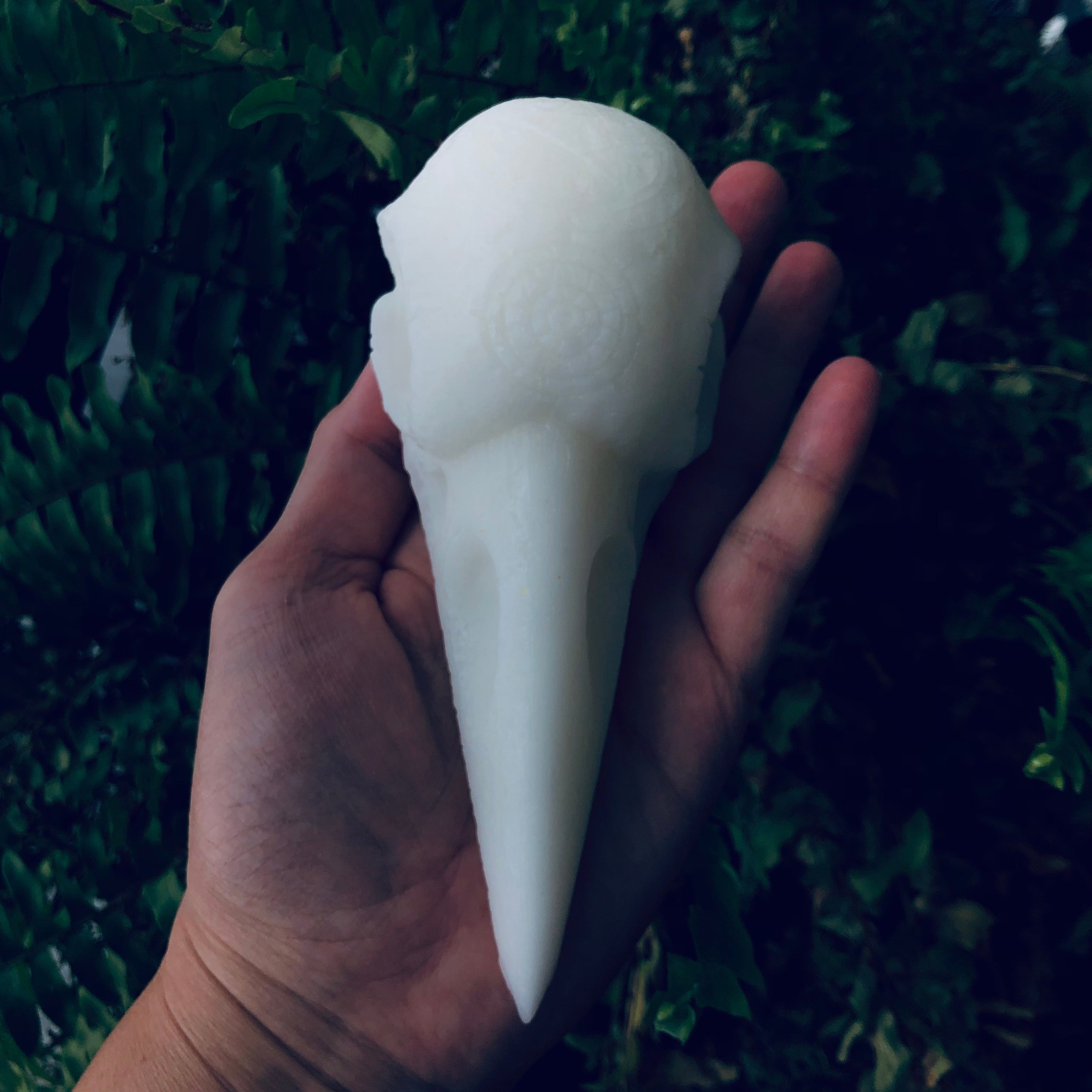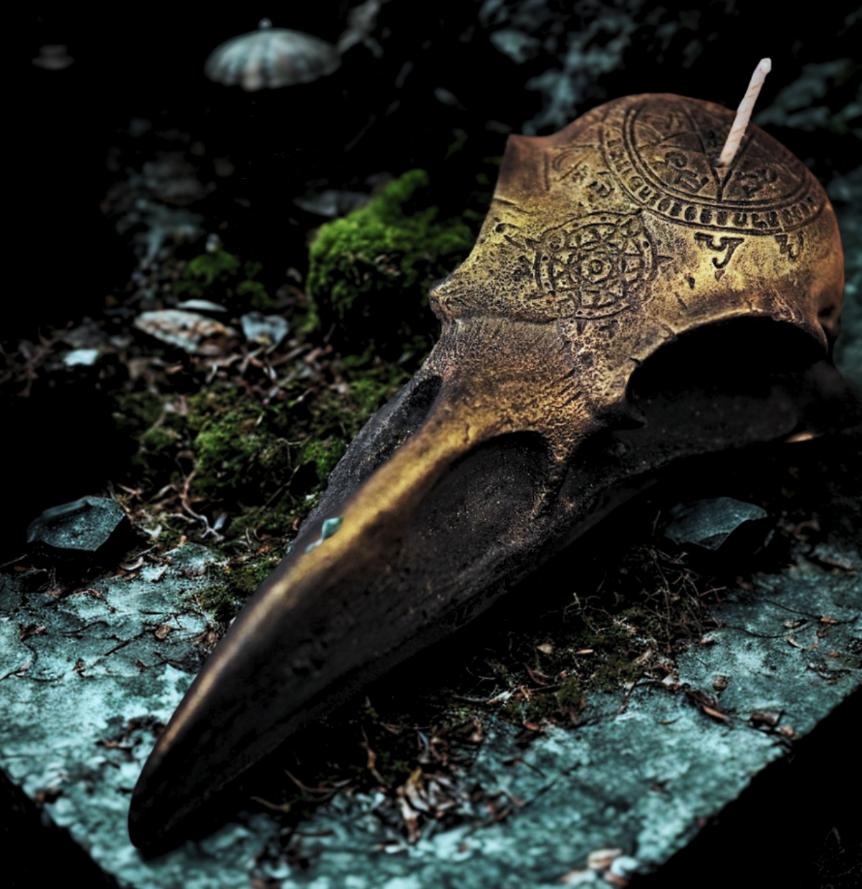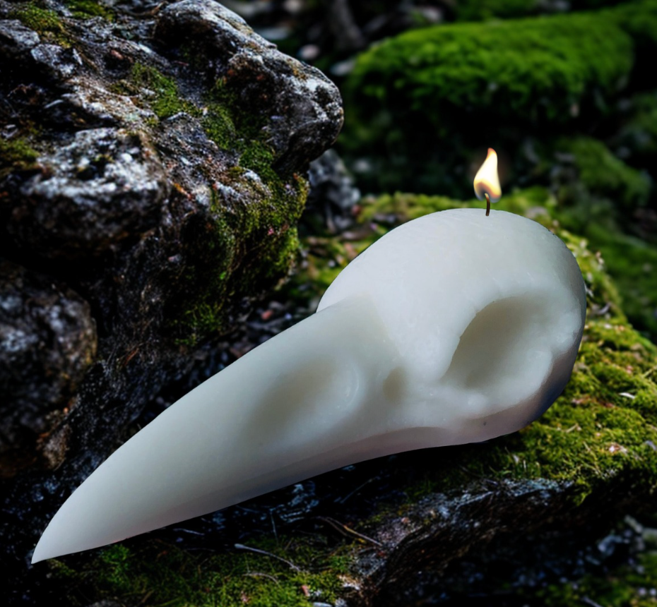 A symbol of shadow and memory, this darkly elegant, hand poured beeswax raven skull candle is a haunting adornment for your altar or sacred space.