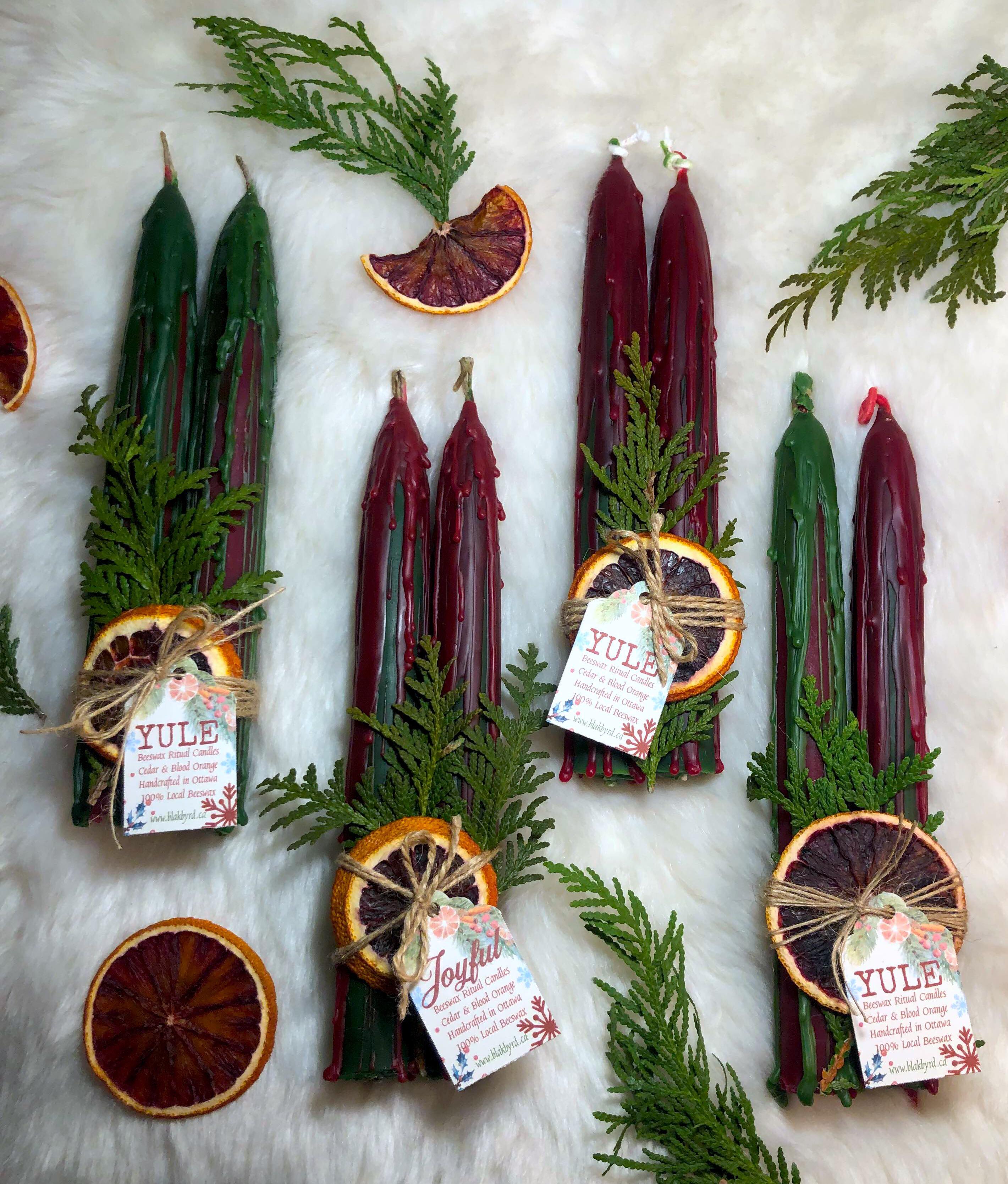 Welcome in the Yule season with this beautiful set of seasonal taper candles made from 100% local beeswax. Imbue warmth and light this holiday season with their timeless glow and magical ambience.